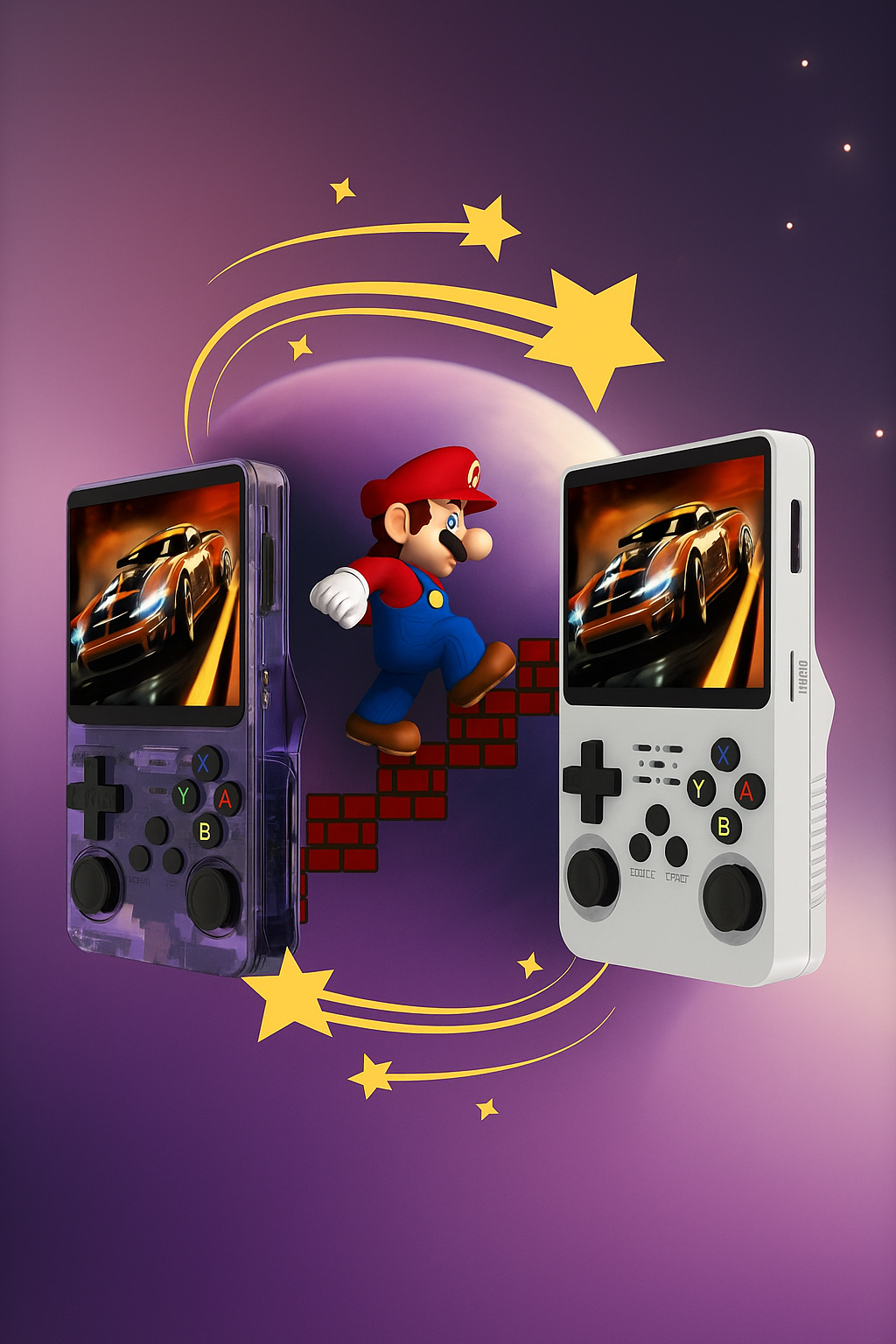 Es erinnert an die ersten tragbaren Konsolen , aber mit der heutigen Geschwindigkeit. Der PocketBoy enthält Tausende von Retro-Spielen: Abenteuer, Plattform, Rennen, Kampf, Puzzle ... alles ist dabei. Egal, ob Sie nostalgische Erinnerungen an die 90er/2000er haben, Gelegenheitsspieler sind oder einfach nur die Klassiker der Videospiele entdecken möchten – er ist wie für Sie gemacht.